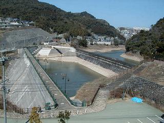 新片淵中学建設用地(城古趾)への接続道路から西山水源地(西山高部新旧ダム)を望む
